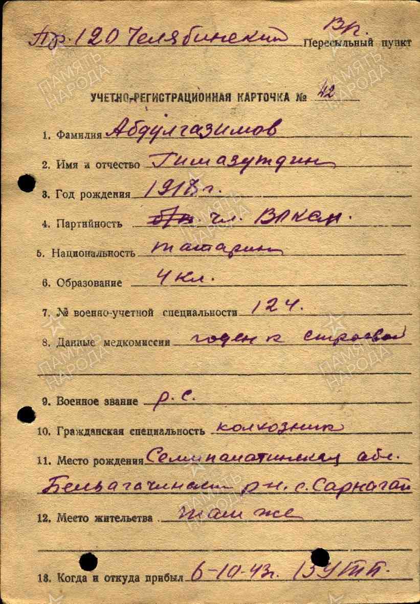 Дата и место призыва: Бельагачский РВК, Казахская ССР, Семипалатинская обл., Бельагачский р-н