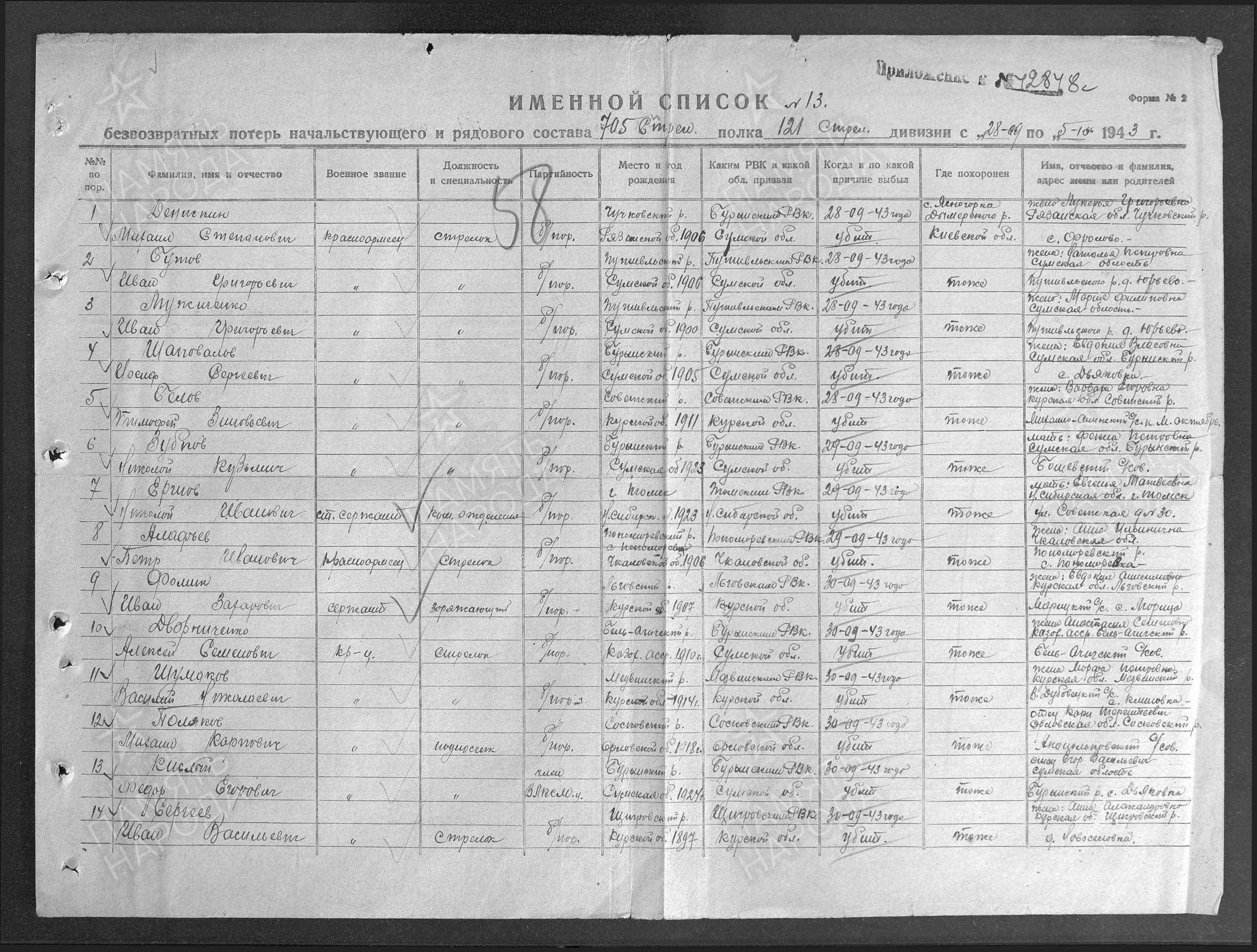 Информация из донесения о безвозвратных потерях