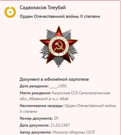 Место рождения: Казахская ССР, Семипалатинская обл., Абаевский р-н, с. Саржал