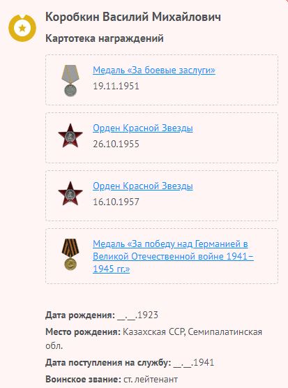 Дата и место призыва: Аягузский РВК, Казахская ССР, Семипалатинская обл., Аягузский р-н Дата призыва: 24.06.1941