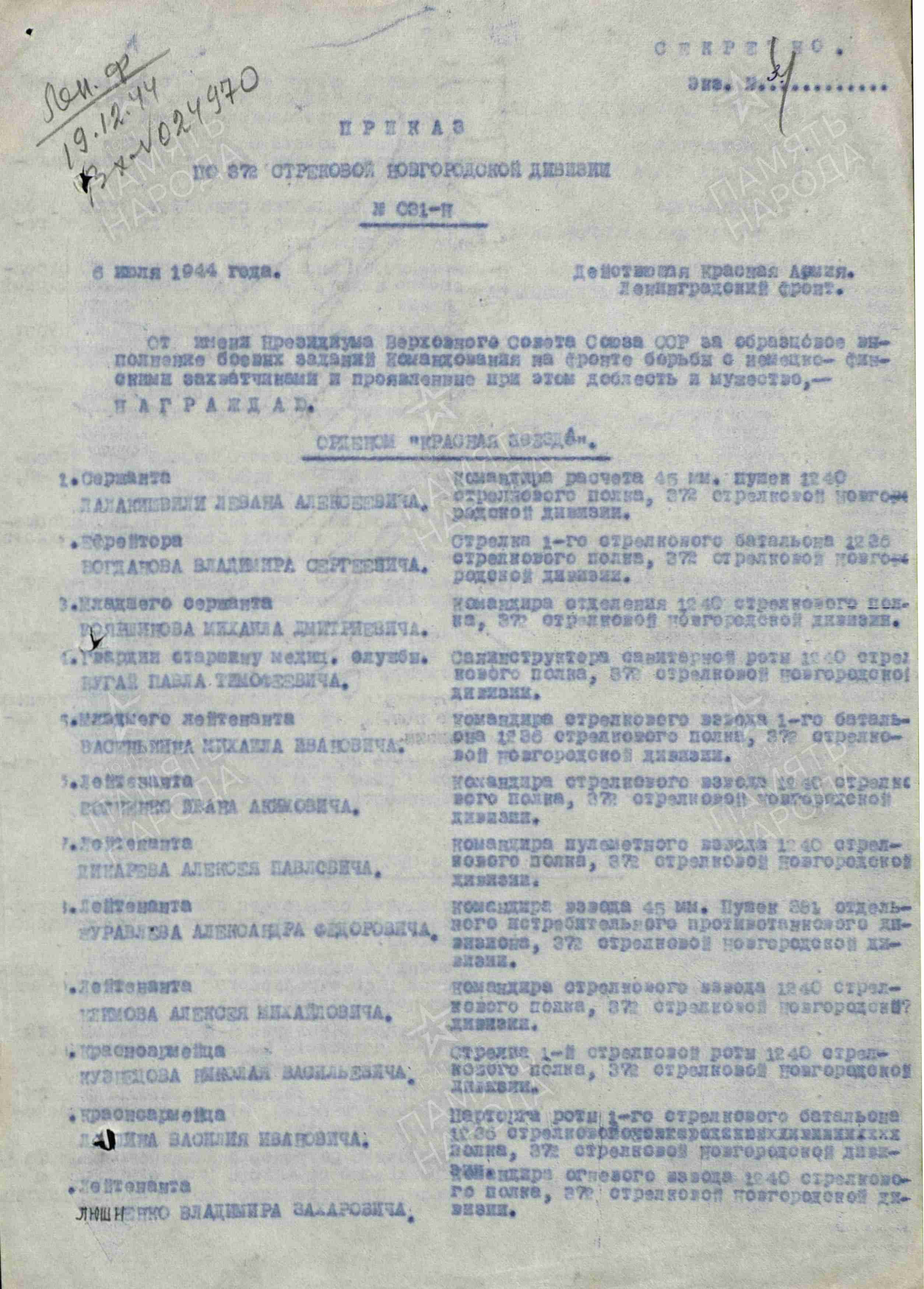 Последнее место службы: 1240 стрелковый полк 372 стрелковой дивизии