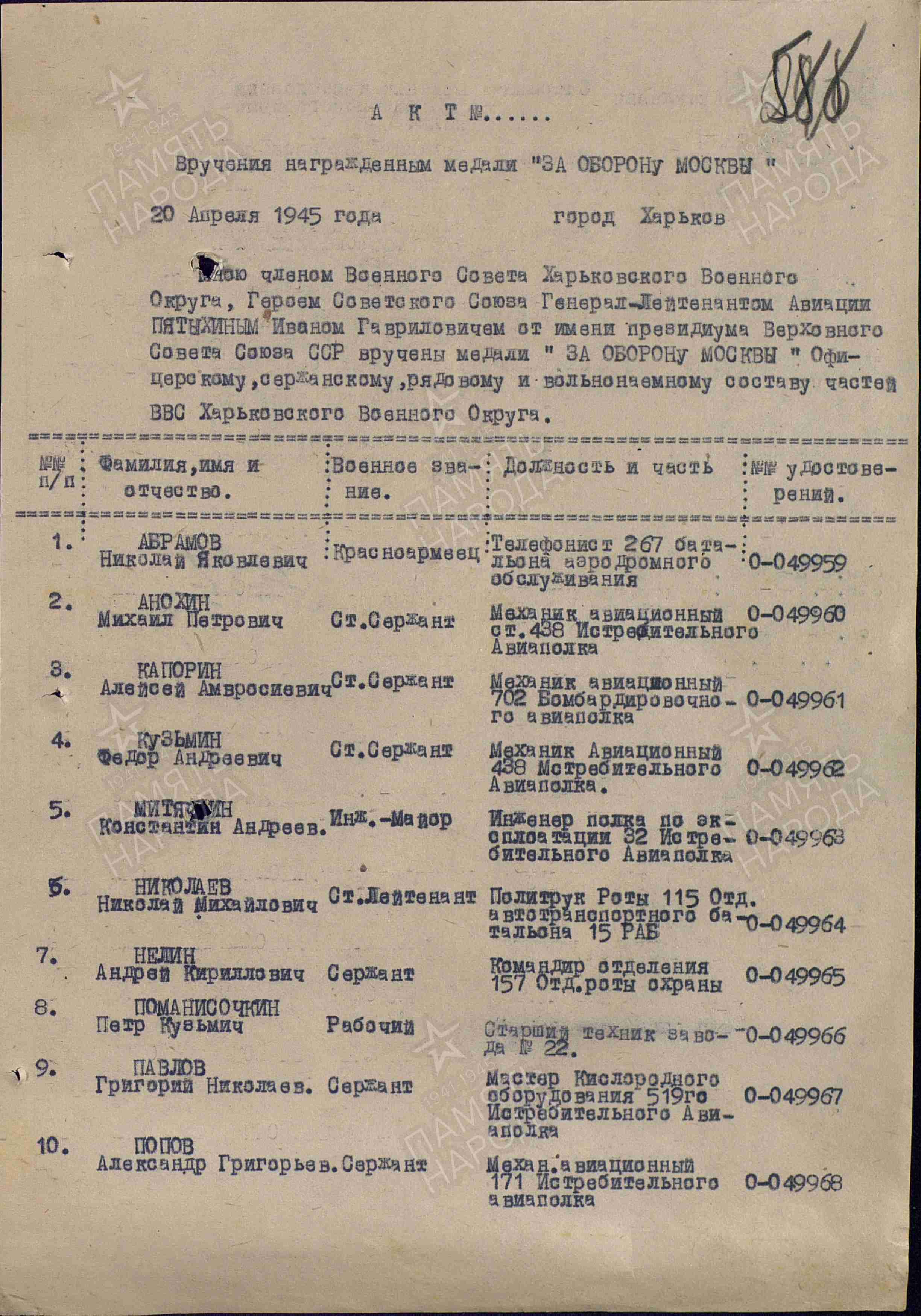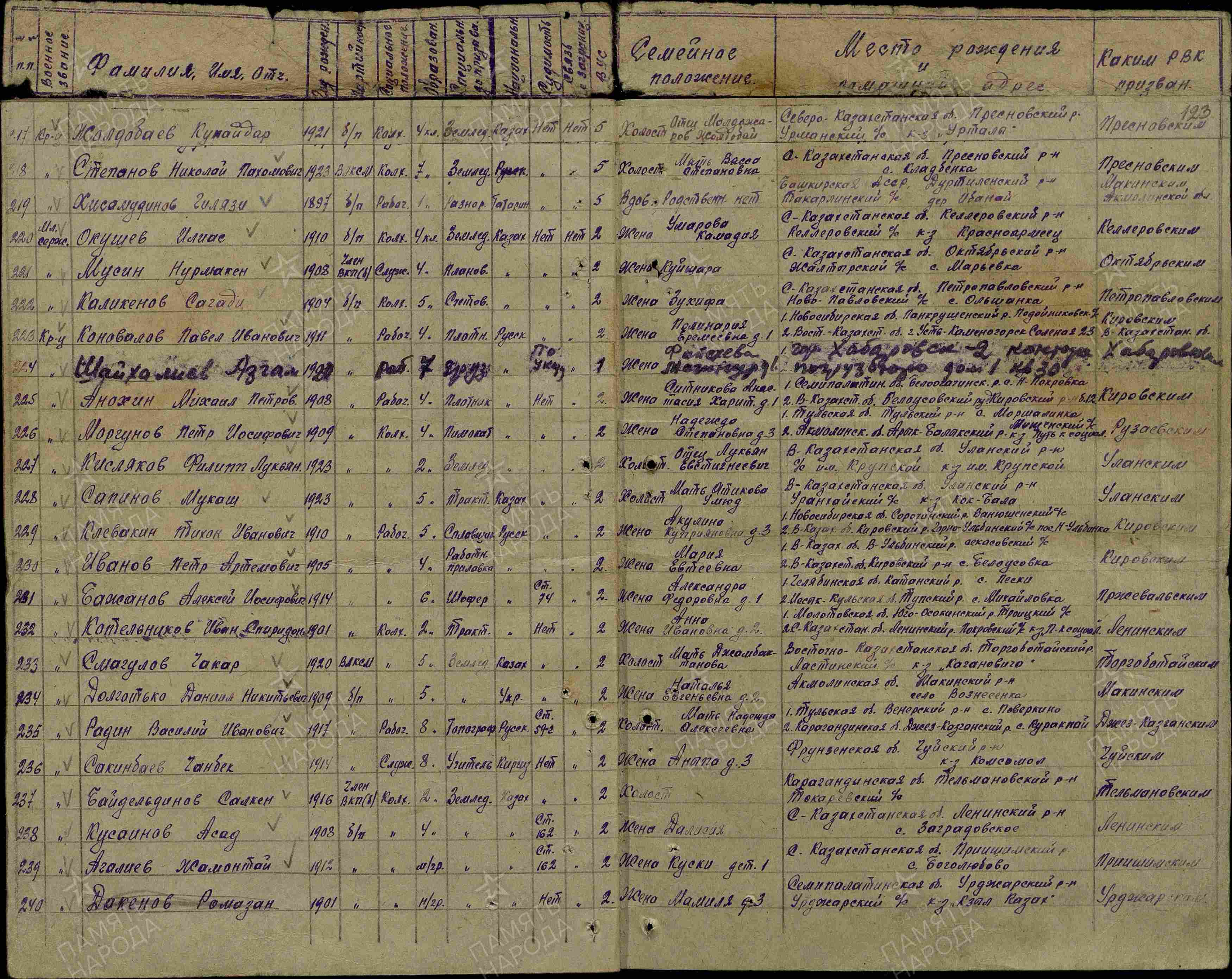 Дата и место призыва: Кировский РВК, Казахская ССР, Восточно-Казахстанская обл., Кировский р-н