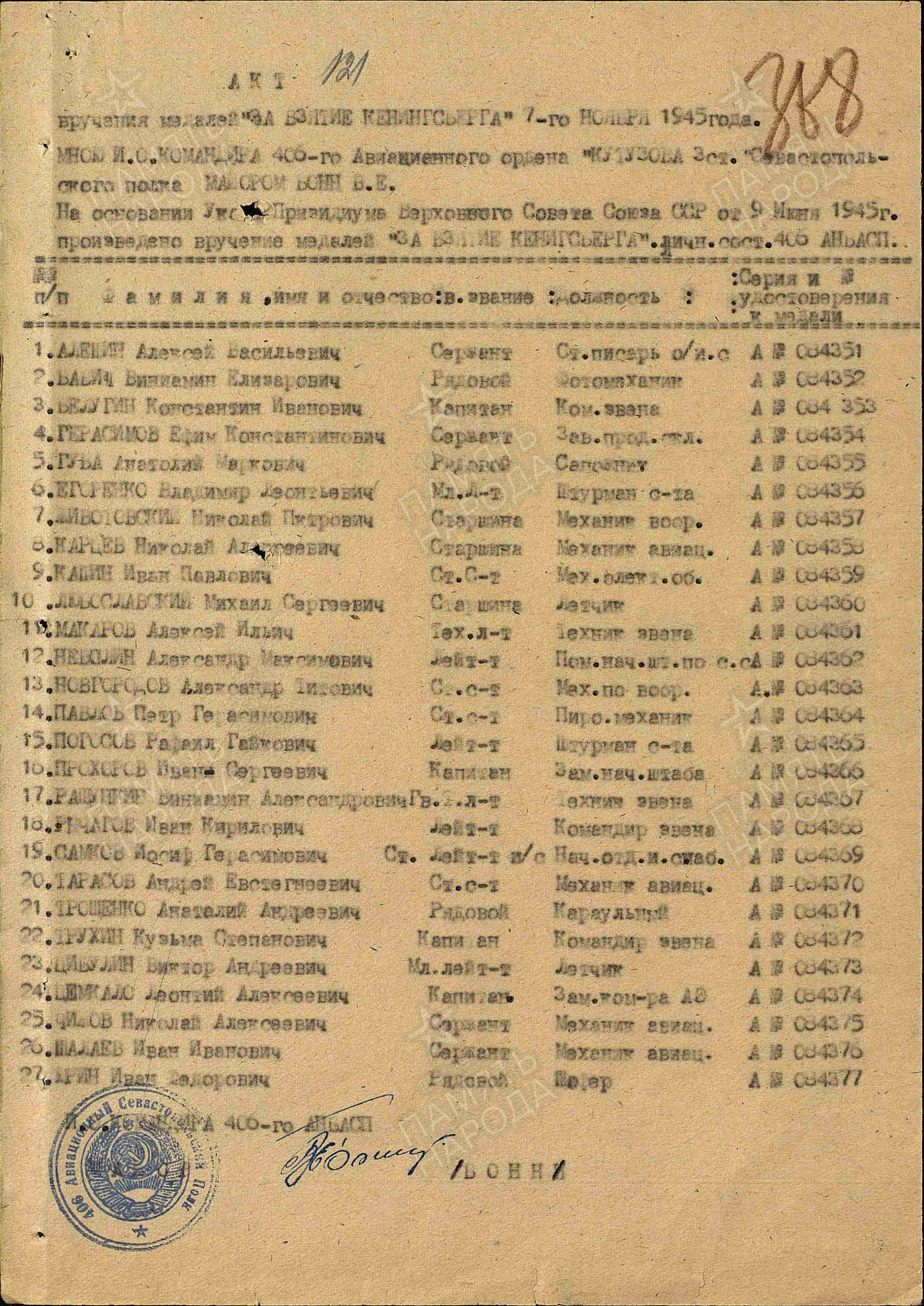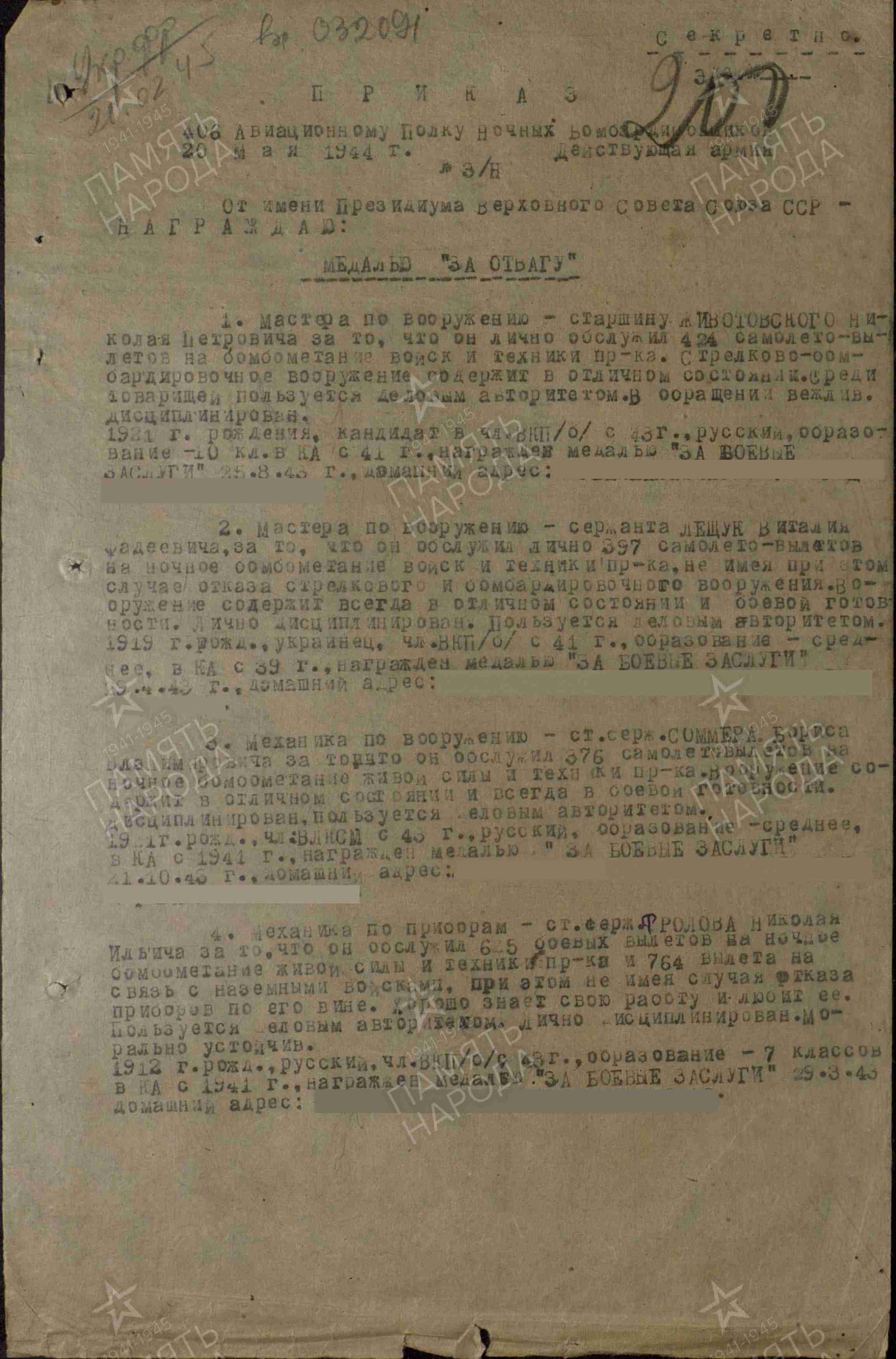 Последнее место службы: 406 ночной бомбардировочный авиационный полк 991 ночной бомбардировочный авиационный полк 2 гвардейская армия 406 авп
