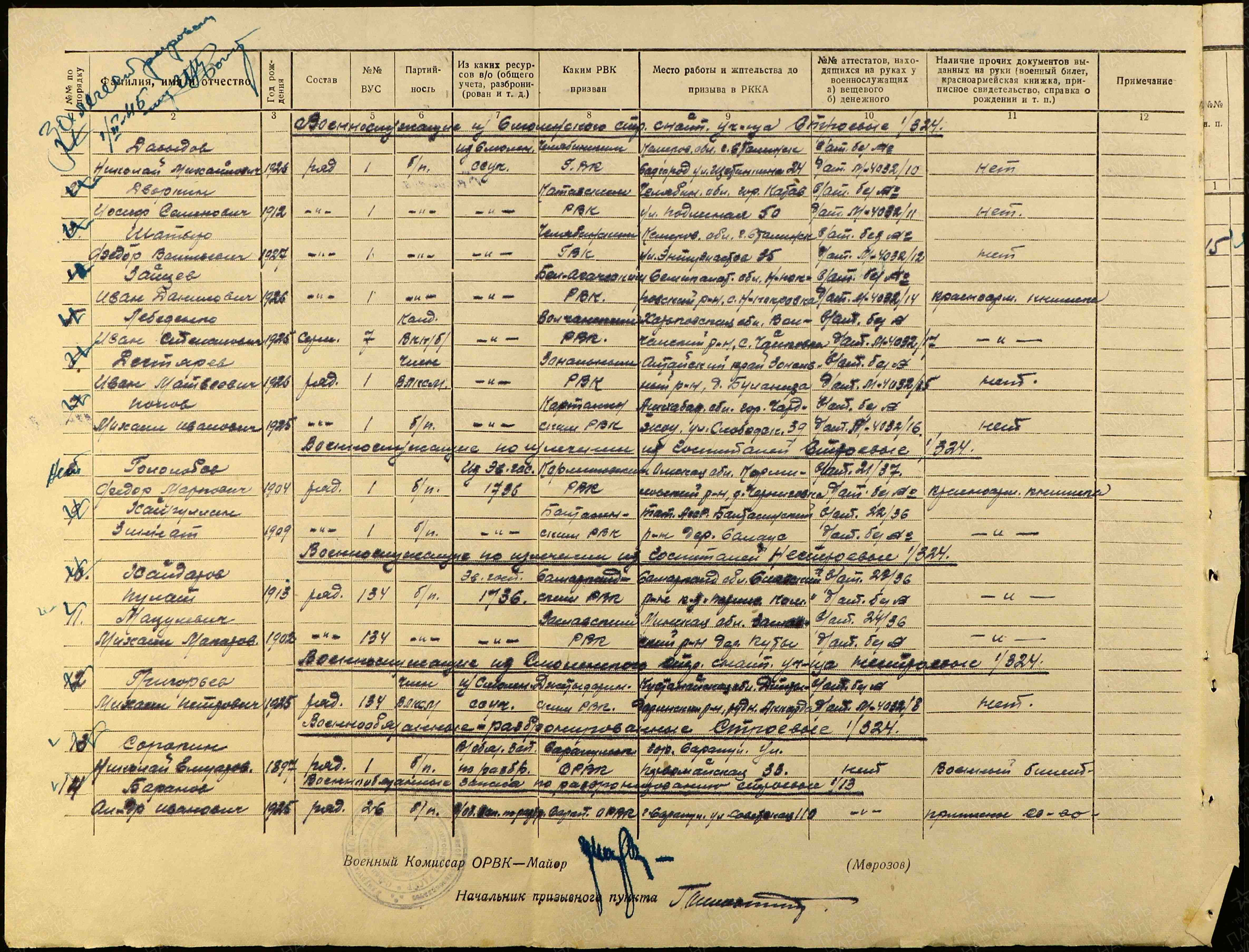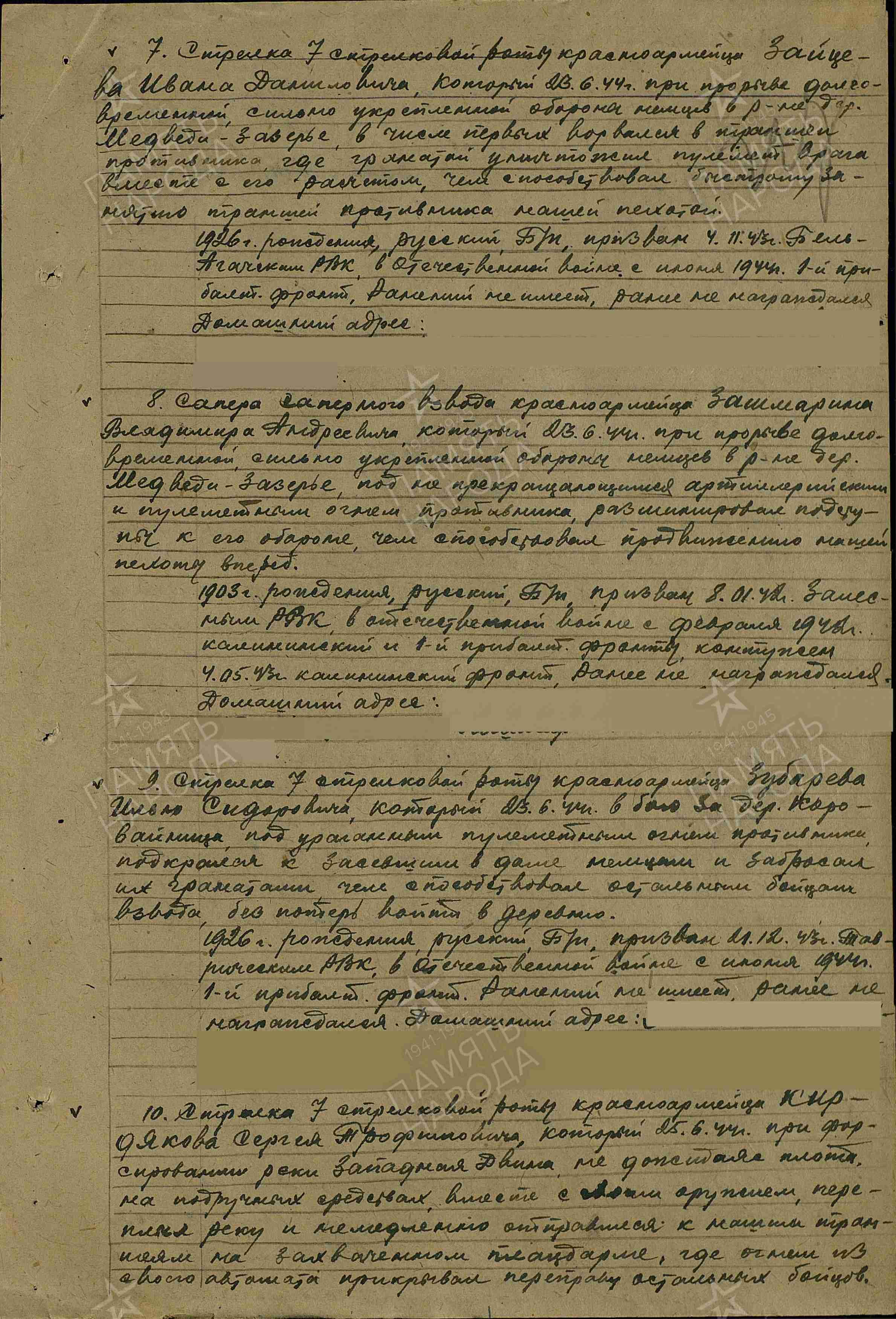 Дата и место призыва: Бельагачский РВК, Казахская ССР, Семипалатинская обл., Бельагачский р-н Дата поступления на службу: 04.11.1943